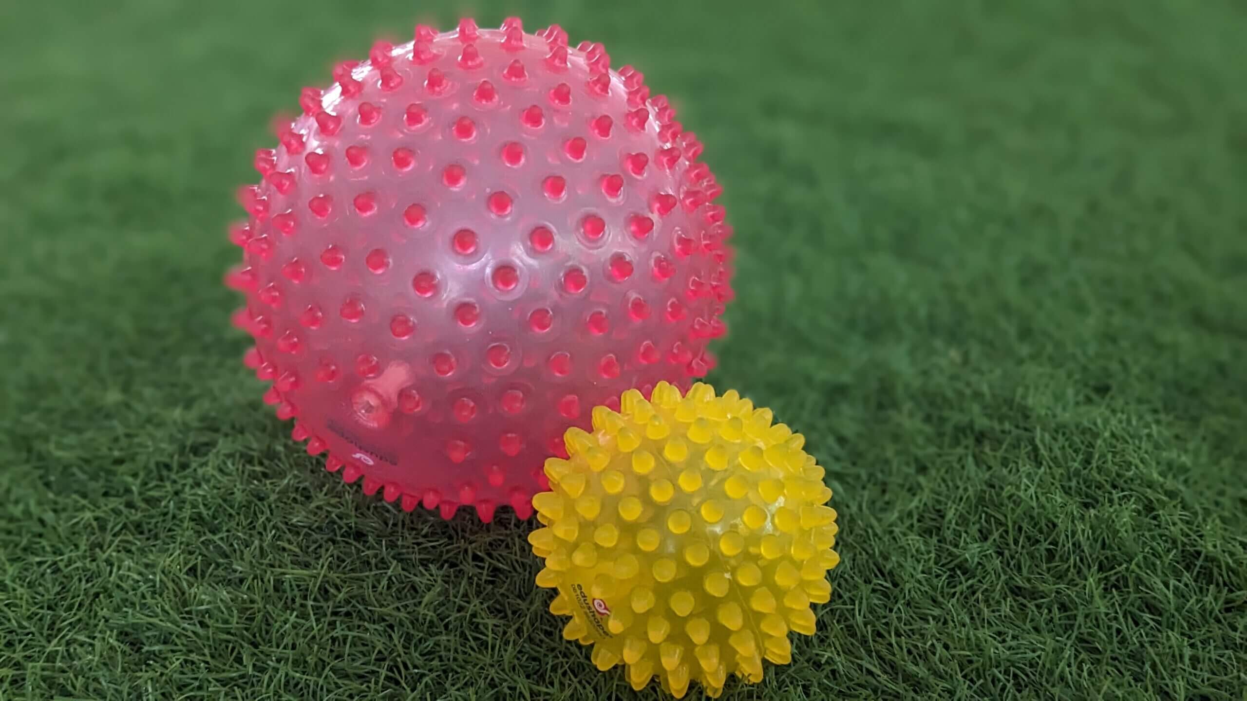 重なったカラフルボールのおもちゃの写真です。