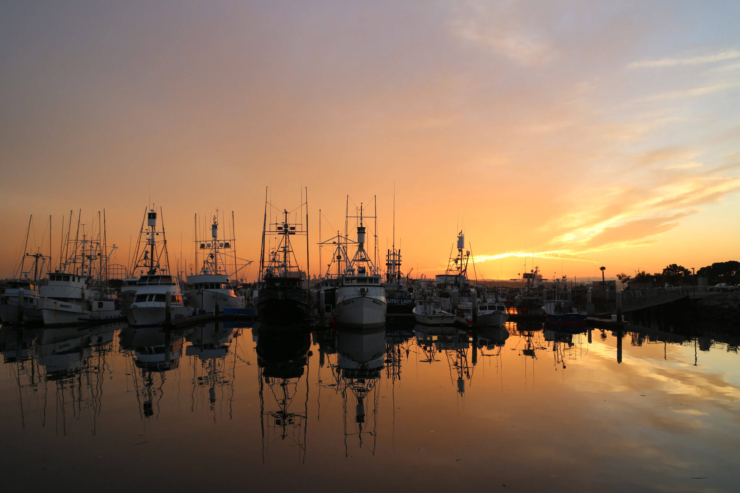 3. 夕日と船と反射した船の写真