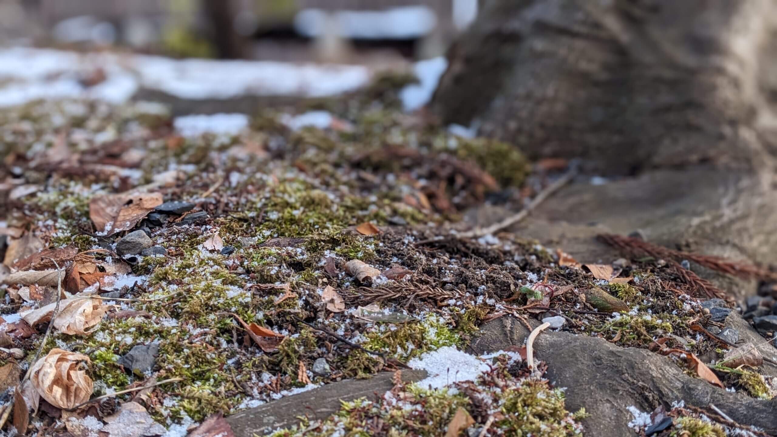 苔と雪が積もった写真