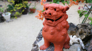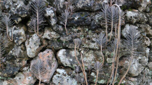 石垣とキンチョウ(錦蝶)沖縄の植物の写真